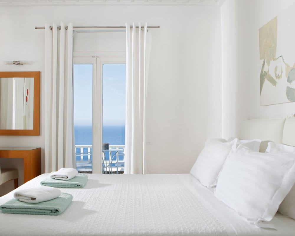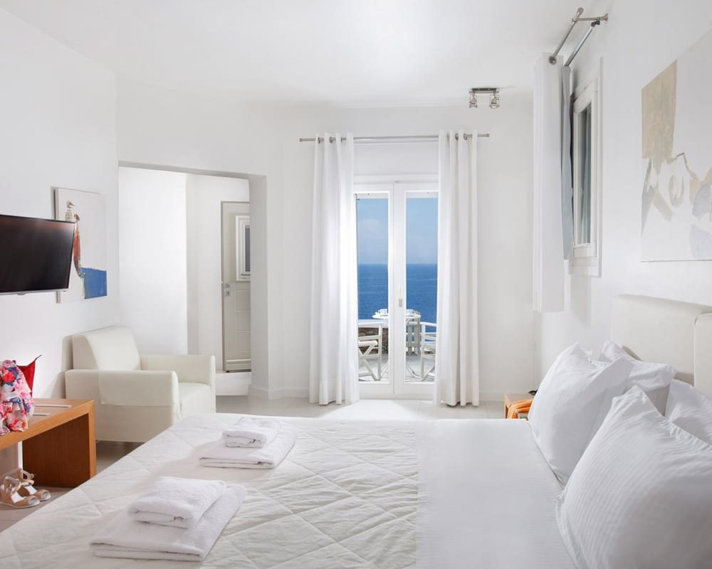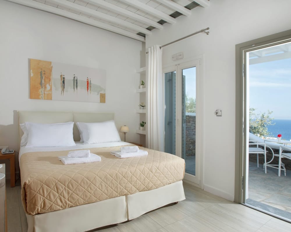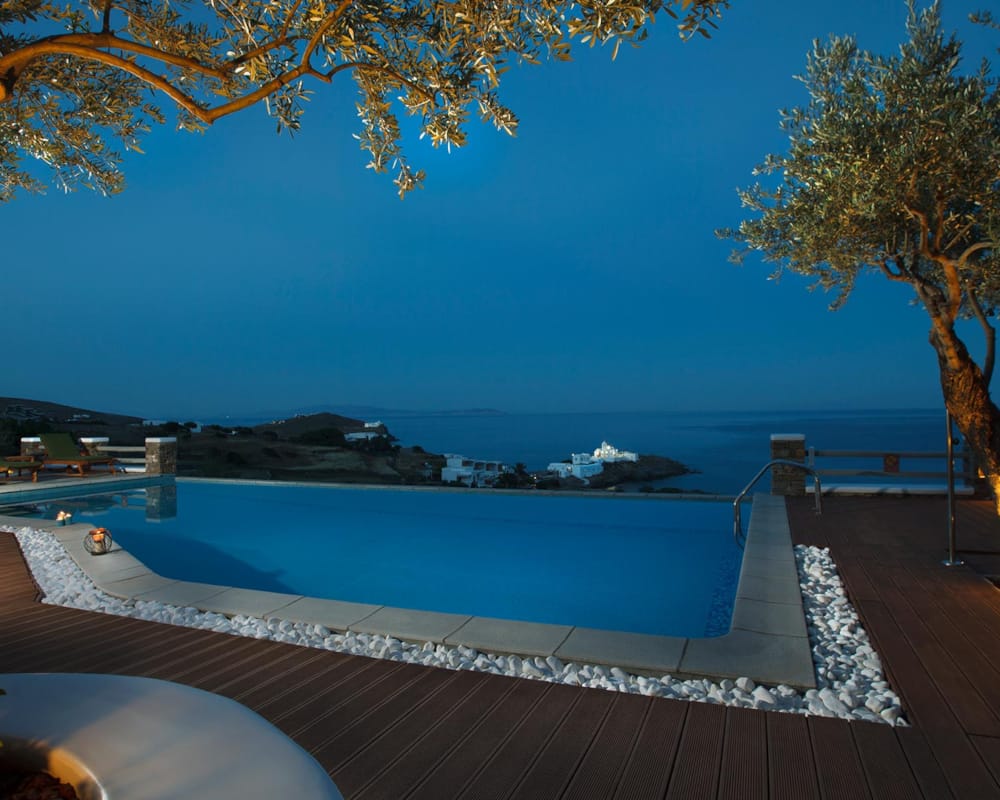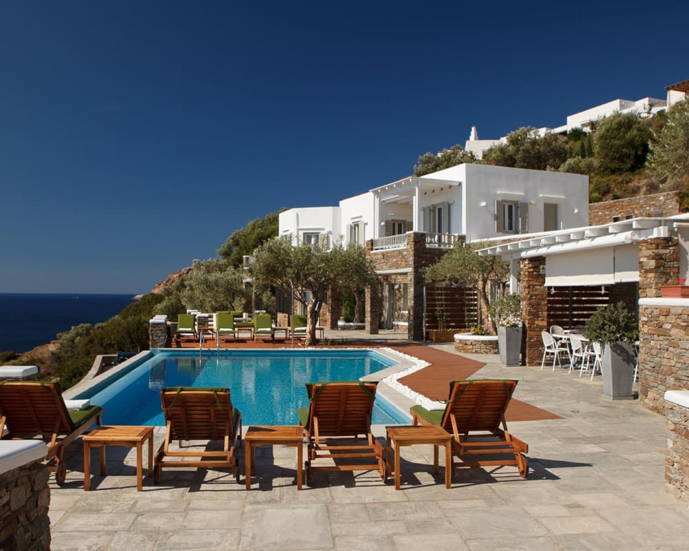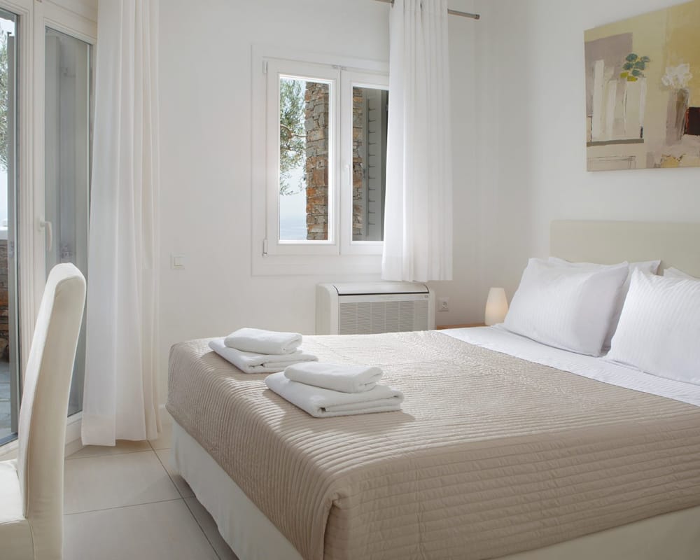 Μια -μοναδική στο νησί- θέα που μπορείτε να απολαύσετε από όλους τους προσεγμένους χώρους αυτού του παραμυθένιου, πετρόκτιστου, boutique ξενοδοχείου που βρίσκεται στην καρδιά ενός τεσσάρων στρεμμάτων ελαιώνα.