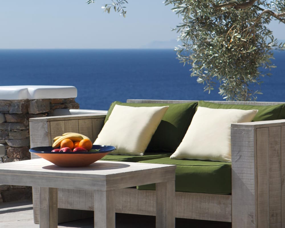 Απολαύστε το πρωινό σας δίπλα στην πισίνα υπερχείλισης με θαλασσινό νερό.